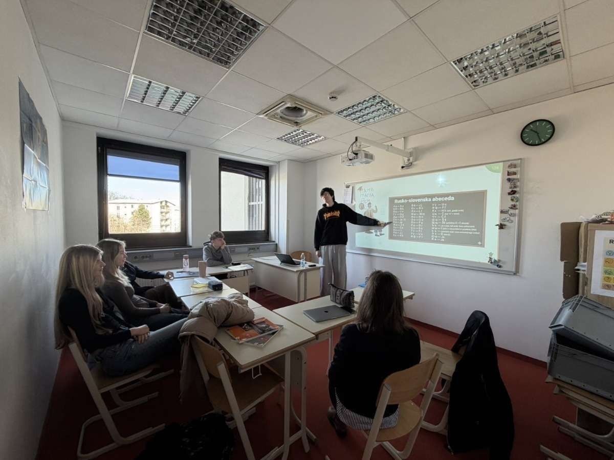The first foreign language is taught from the P1 onwards. The students can select between English, German and French and Slovene is an additional subject.