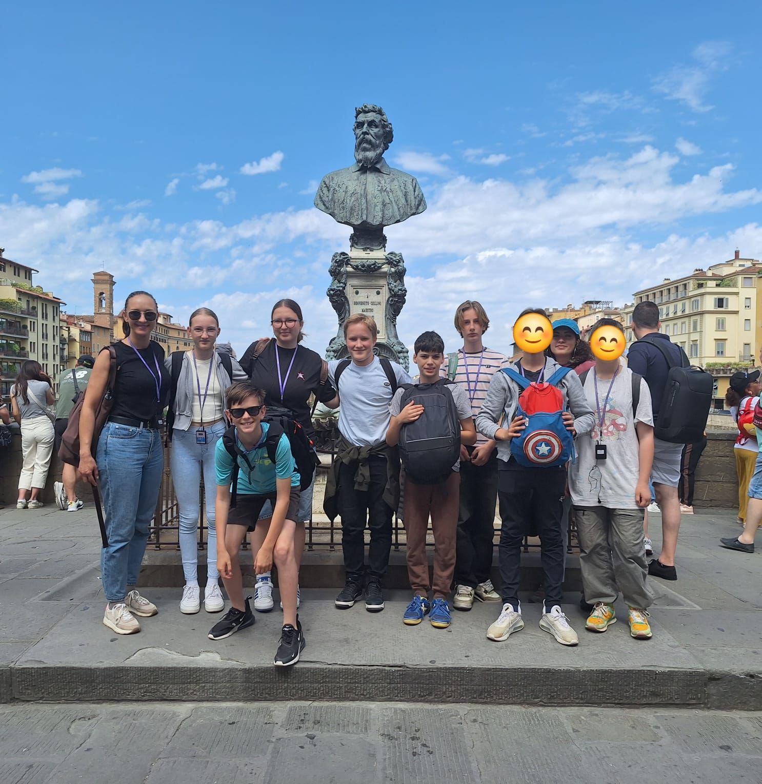Ob 7:50 zjutraj smo se vsi skupaj zbrali na železniški postaji Agliana, od koder smo z vlakom odšli v Firence. Tam smo začeli dan z vodenim ogledom, ki je bil zelo zanimiv, saj smo veliko izvedeli o starejših stavbah tega mesta. Med ogledom smo se ustavili za malico zraven galerije Uffici. Po malici smo nadaljevali z ogledom ter ga zaključili zraven cerkve Sante Croce, kjer so pokopani znani umetniki, kot sta Leonardo da Vinci in Michelangelo. Naslednjih 30 minut smo imeli prosti čas za nakupovanje različnih spominkov ali sladoleda. Zatem so ostali odšli nazaj na vlak, medtem ko je naša, slovenska skupina ostala v mestu. Kot razred smo se odločili, da je Lego trgovina naša prioriteta, zato smo šli najprej tja, kupili še nekaj stvari in se potem odpravili v bližnjo restavracijo na kosilo. Po obroku smo krenili proti trgu in se razdelili po skupinicah si vzeli še nekaj časa zase. Ob koncu popoldneva smo šli na vlak, vmes prestopili na drugega in se ob petih popoldne vrnili v Agliano. Na postaji so nas čakali naši gostitelji, ki so nas odpeljali domov. (J.)