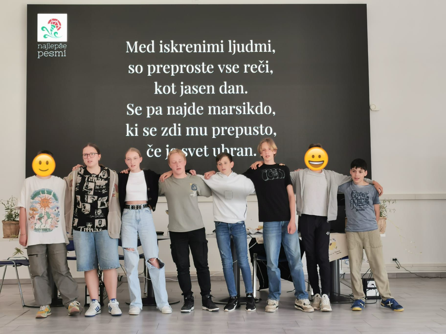 Zjutraj ob 7.50 smo se v avditoriju srečali z drugimi Erasmus študenti. Po nekaj minutah je naš razred odšel v ločen prostor, kjer smo imeli zadnjo vajo za pesem, ki smo jo kasneje predstavili pred delom šole. Nato smo odšli na drugo šolo, kjer smo izdelovali semenske bombice. Preden smo začeli z njihovim izdelovanjem, sta nam dve prijazni učiteljici prebrali zgodbo o življenjskem krogu rastline skozi leto. Ko smo zaključili s tem, smo šli v šolsko telovadnico in sodelovali v interaktivni dejavnosti, kjer smo morali v ekipah tekmovati na poligonu, in upali, da bomo prvi. Naslednjih trideset minut smo preživeli v šolskem parku, kjer smo metali semenske bombice in se družili s prijatelji. Nato smo se vrnili v avditorij in kasneje tudi malicali. Po malici smo se vsi Erasmus študenti zbrali v avditoriju za zaključni dogodek. Ta se je začel z govorom učiteljice, ki je izrazila hvaležnost, da smo bili tam in da smo imeli toliko lepih trenutkov skupaj. Nato je vsaka skupina, vključno z nami, predstavila svojo pesem, ki so jo vadili pretekli teden. Zadnja stvar na zaključni slovesnosti je bila razglasitev zmagovalca tekmovanja za oglaševanje našega projekta. Zmagali smo s tri tisoč glasovi, kar nas je zelo razveselilo. Logotipi drugih skupin so bili prav tako zelo navdušujoči. Na koncu so nas naši gostitelji odpeljali domov na kosilo. (A.)