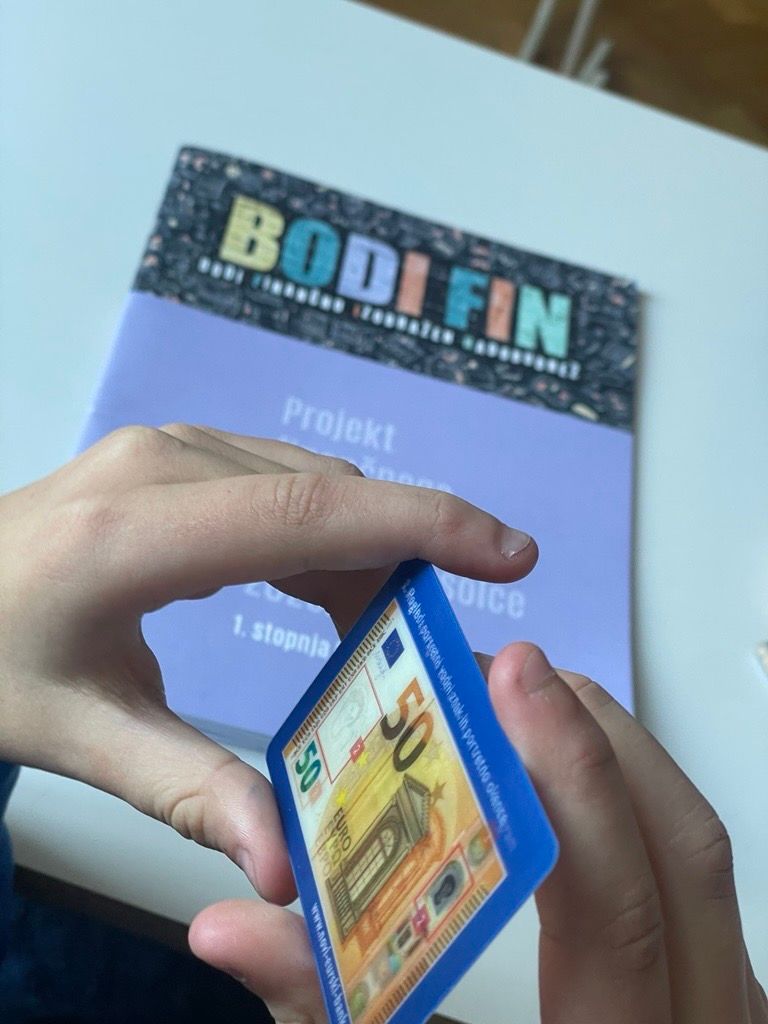 V četrtek, 18. decembra, so učenci oddelka P5S v okviru projekta Bodi FIN (finančno izobražen nadobudnež) sodelovali na zanimivi in poučni delavnici finančnega opismenjevanja. Delavnico je vodila ga. Patricija Varšek, ki je učence na prijeten in igriv način popeljala v svet denarja in financ.