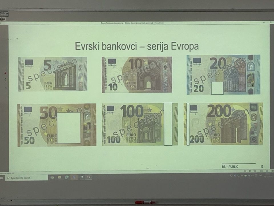 Učenci so si najprej ogledali kratek film o mladih mojstrih financ, ki jih je takoj pritegnil in spodbudil k razmišljanju. Obnovili so znanje prvih treh poglavij v delovnem zvezku. Sledil je pogovor o tolarjih in evrih, reševanje zanimivih nalog o simbolih na bankovcih in kovancih, ter raziskovanje načinov, kako lahko preverimo, ali je bankovec pristen ali ponarejen.